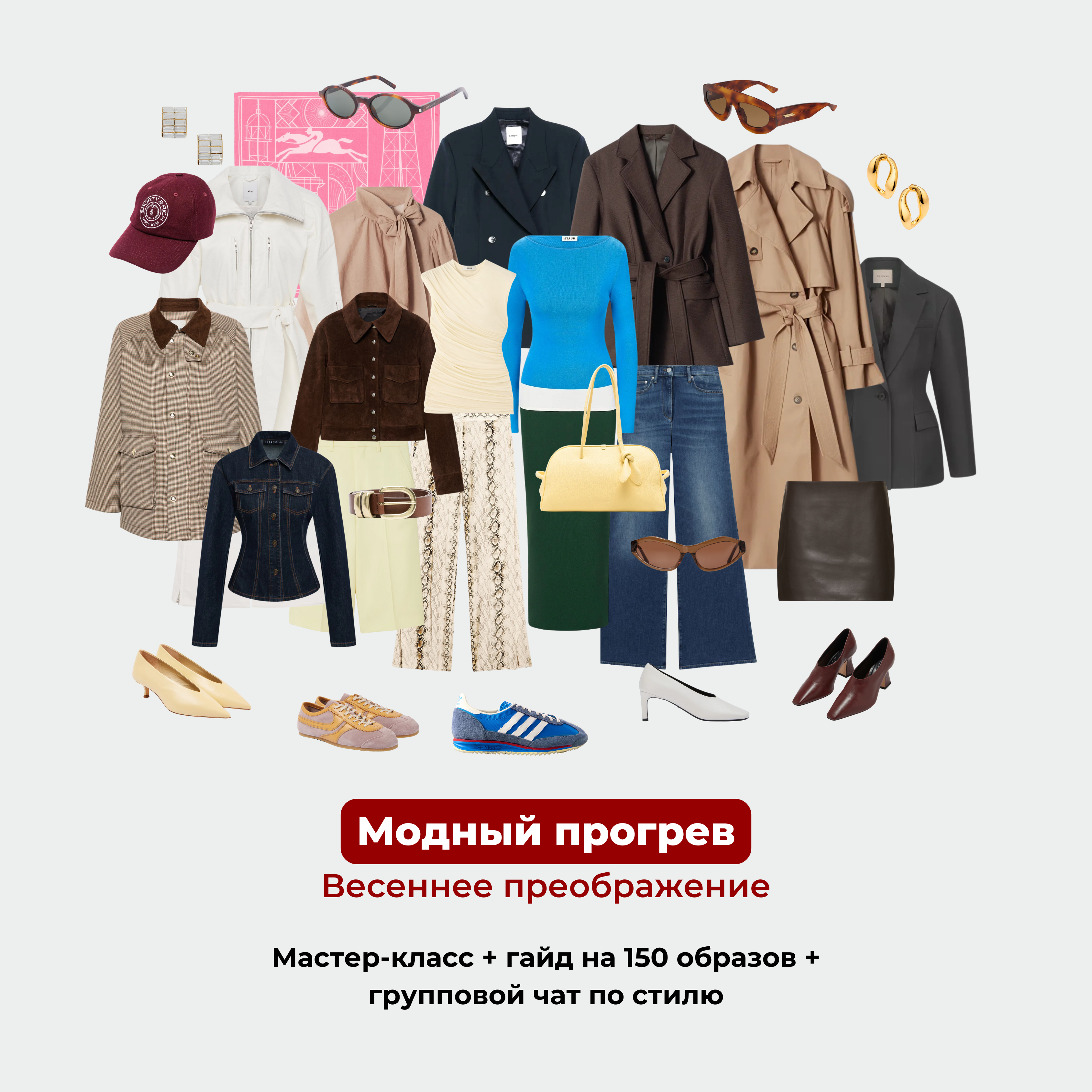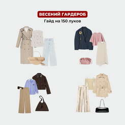 Сразу после оплаты вы получите 100 готовых образов, а еще 50 мы пришлем вам 20 марта. До середины марта весенние коллекции у брендов будут обновляться, и мы хотим, чтобы у вас были самые актуальные позиции.